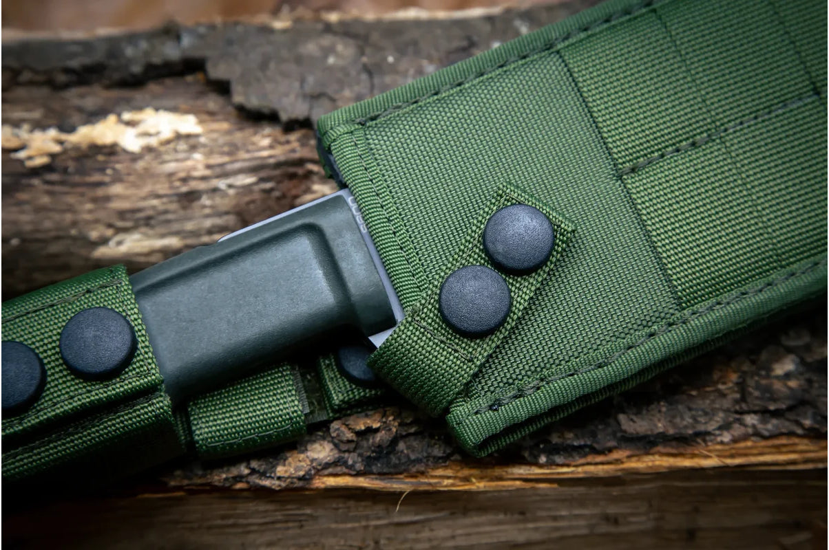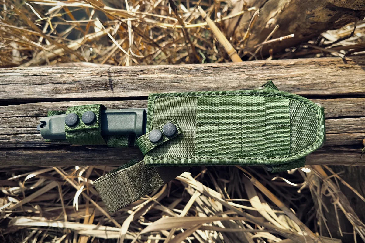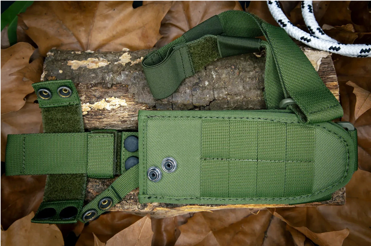 SHEATH: The ONTOS II S600 BLACK includes a green Cordura thigh sheath, built for field readiness and comfort. Fully MOLLE-compatible, it mounts securely to backpacks, belts, or tactical gear for easy access. Designed for versatility and durability, it keeps your knife close at hand.